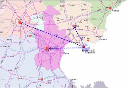 曹妃甸位于环渤海中心地带、唐山南部,毗邻京津两大城市,距唐山市中心区80公里,距北京220公里,距天津120公里,距秦皇岛170公里。交通便利发达,铁路有京山、京秦、大秦等国铁干线东西贯通,迁曹、唐遵、卑水、汉南、滦港等国铁支线南北相连;唐曹高速与京沈、唐津、唐港、沿海、唐承高速互通;曹妃甸港区矿石、原油、煤炭和散杂货、集装箱等码头实现了国内国际通航。从国际海运看,距韩国仁川港400海里,距日本长崎680海里、神户935海里,与矿石出口国澳大利亚、巴西、秘鲁、南非、印度等国海运航线十分顺畅,构成运输便捷、成本较低的海陆一体化的交通运输体系。