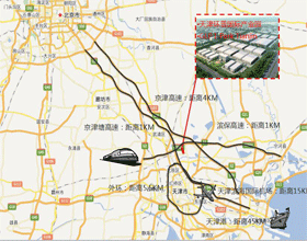 地理位置优越,交通便捷,围绕天津外环,京津高速,京津塘高速,据天津滨海国际机场15千米,天津港45千米,区位优势明显,京津冀中心区域。